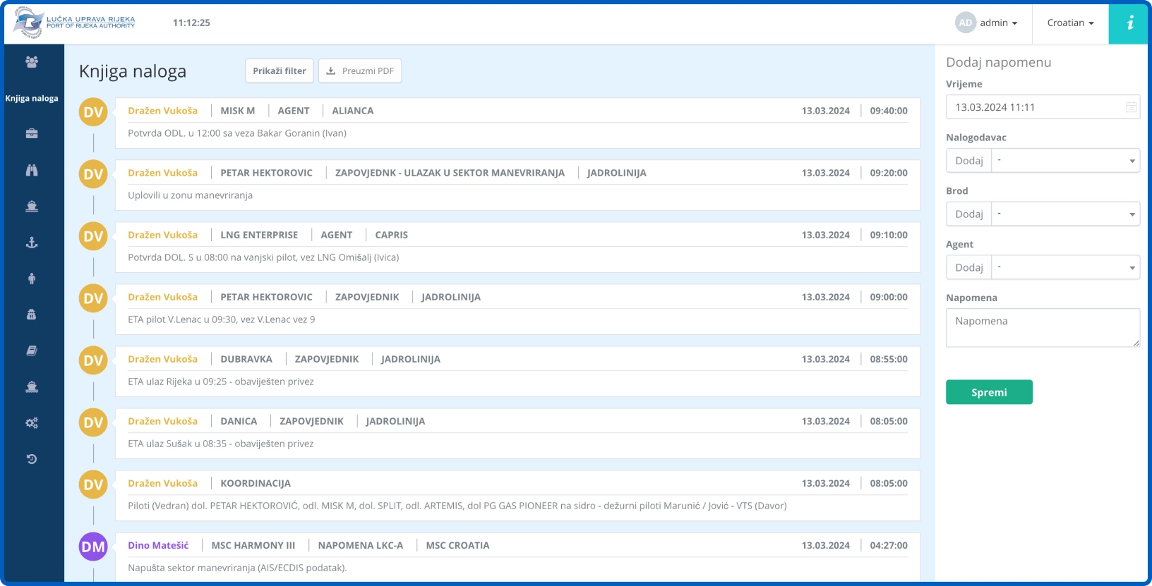 Port Authority Website Integration: Further extending its utility, the system feeds live data to the Port of Rijeka Authority's website, showcasing detailed information about port occupancy. Visitors to the site can access up-to-the-minute details on vessel maneuvers, including names, types, lengths, and other relevant ship information. This transparency ensures that the public and potential port users are well-informed about port activities. The integration in action can be viewed here.