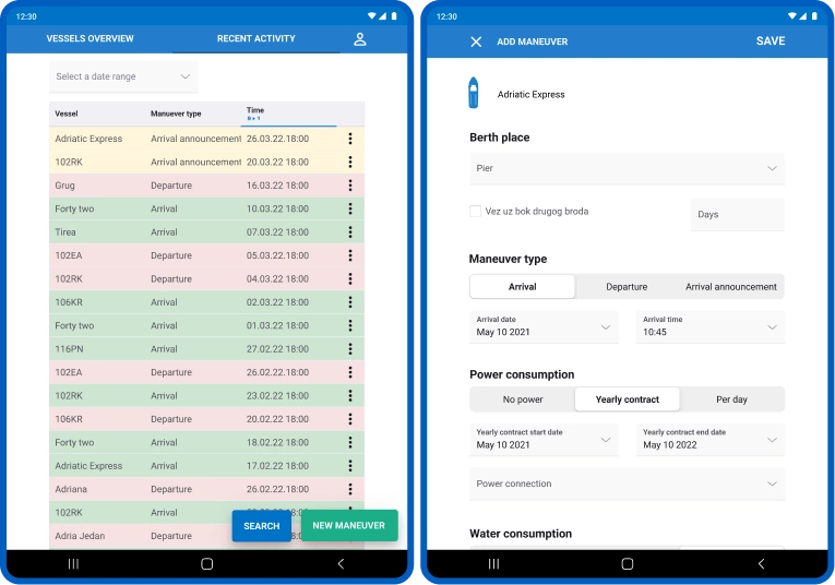 - Maneuver Tracking: The app allows for real-time entry and monitoring of vessel maneuvers, providing a comprehensive view of maritime movements within the port.